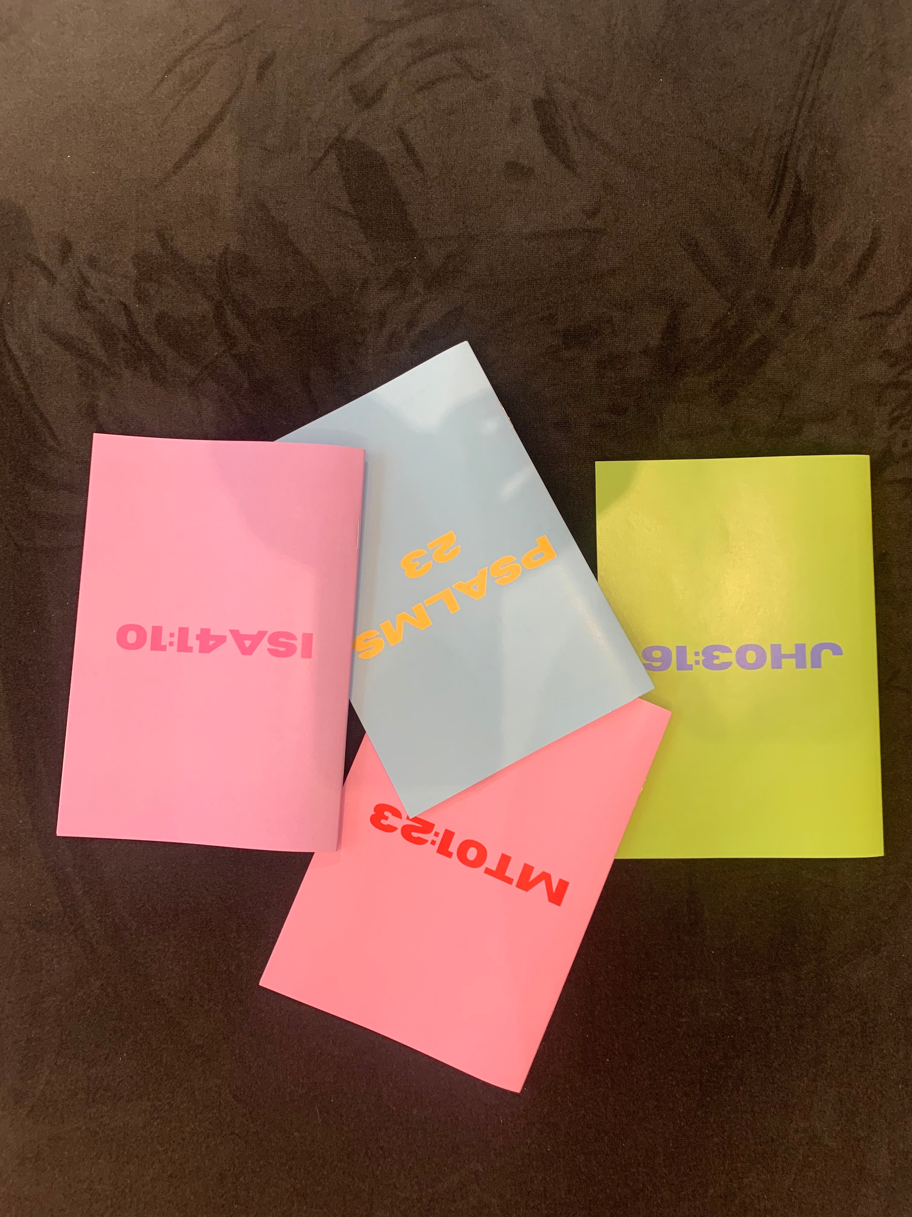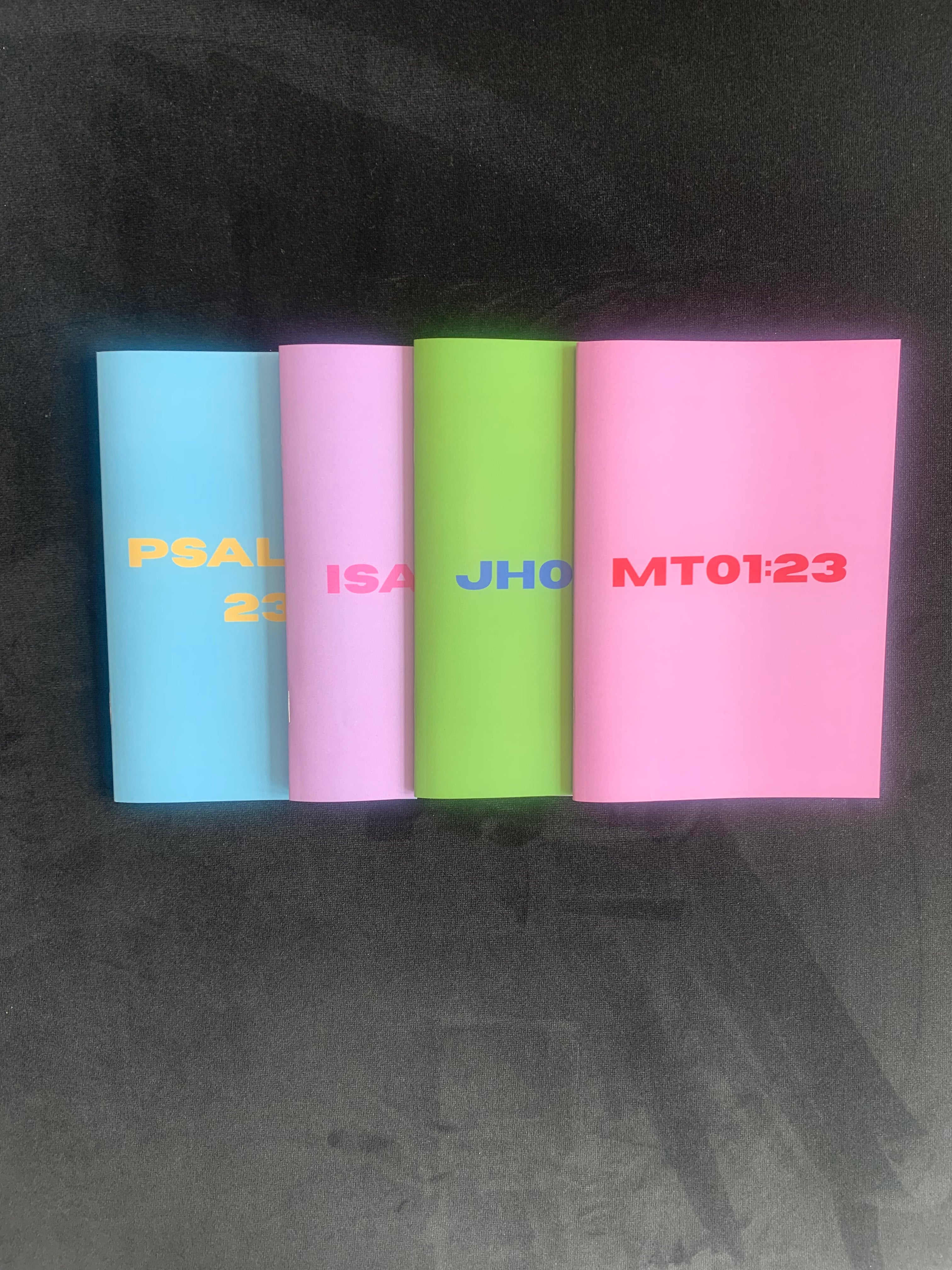 Each notebook comes in bright, vibrant, joy-filled color combinations, designed to bring a smile and spark conversations. The minimalist cover features an abbreviated Scripture reference (such as MT04:17) that naturally invites curiosity and opens doors for sharing your faith.